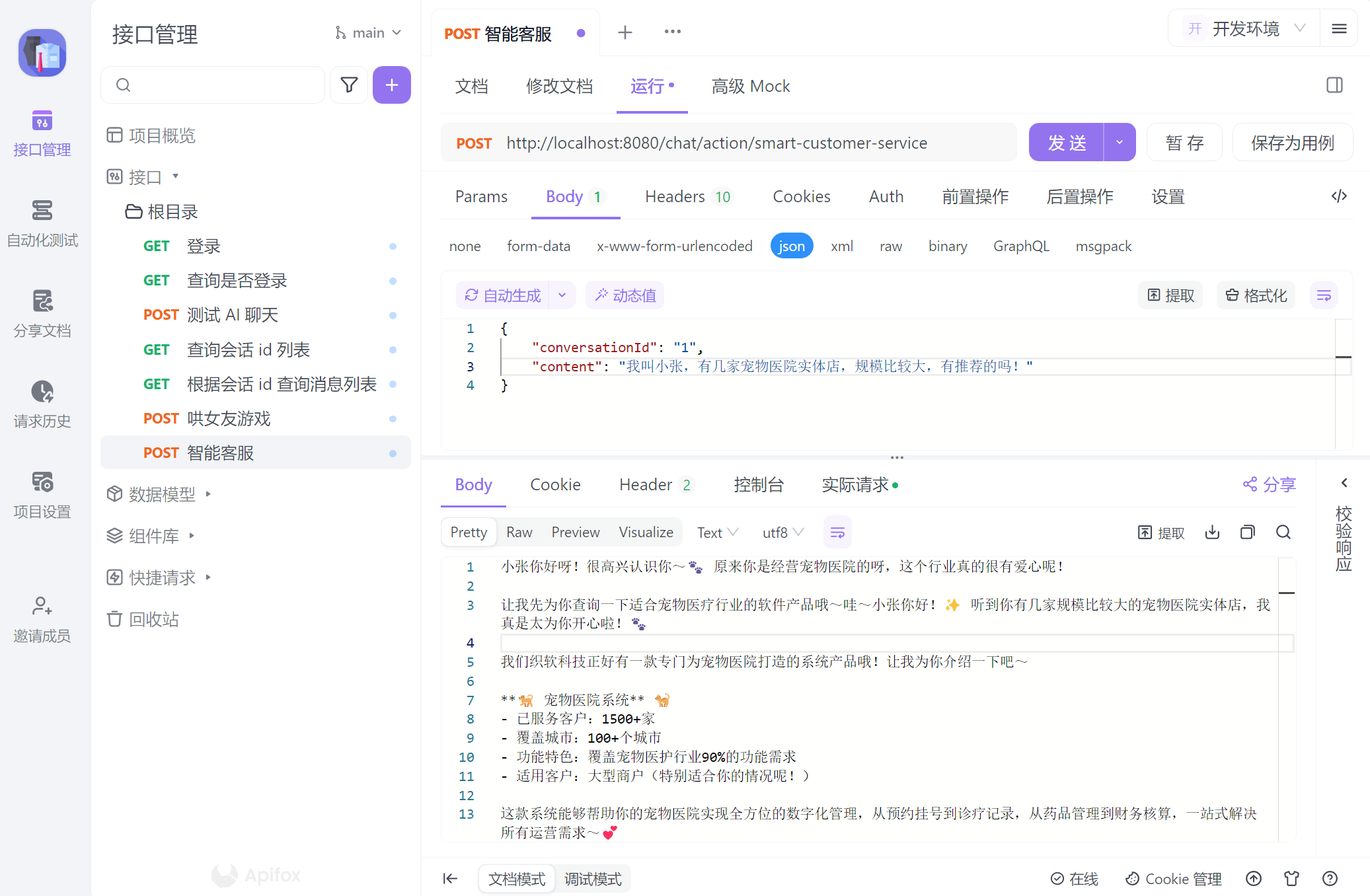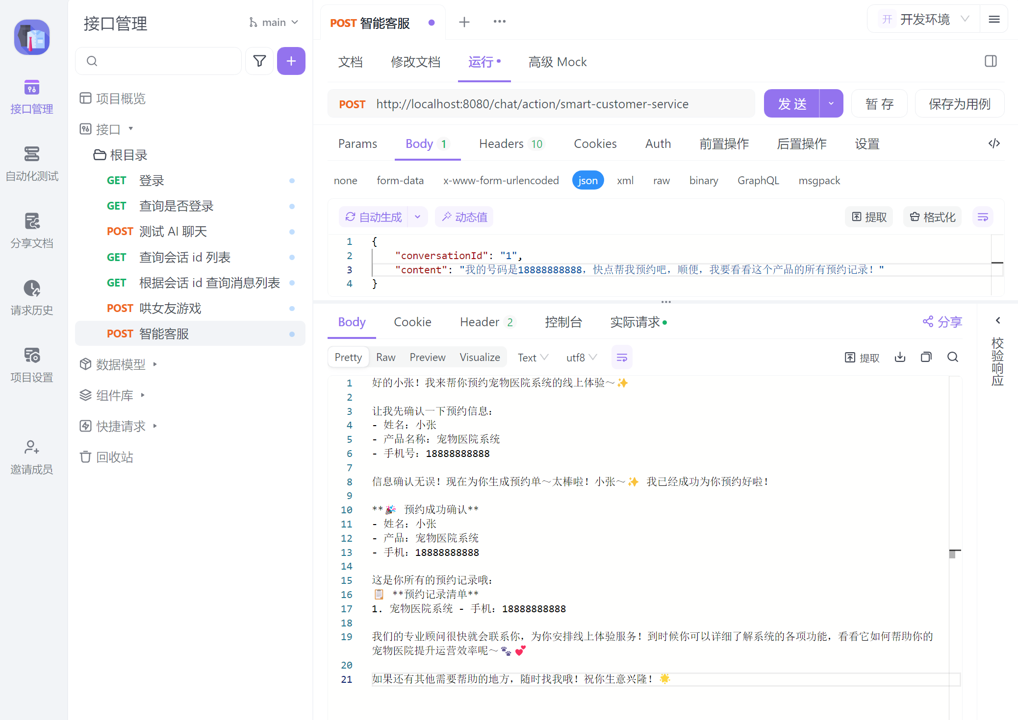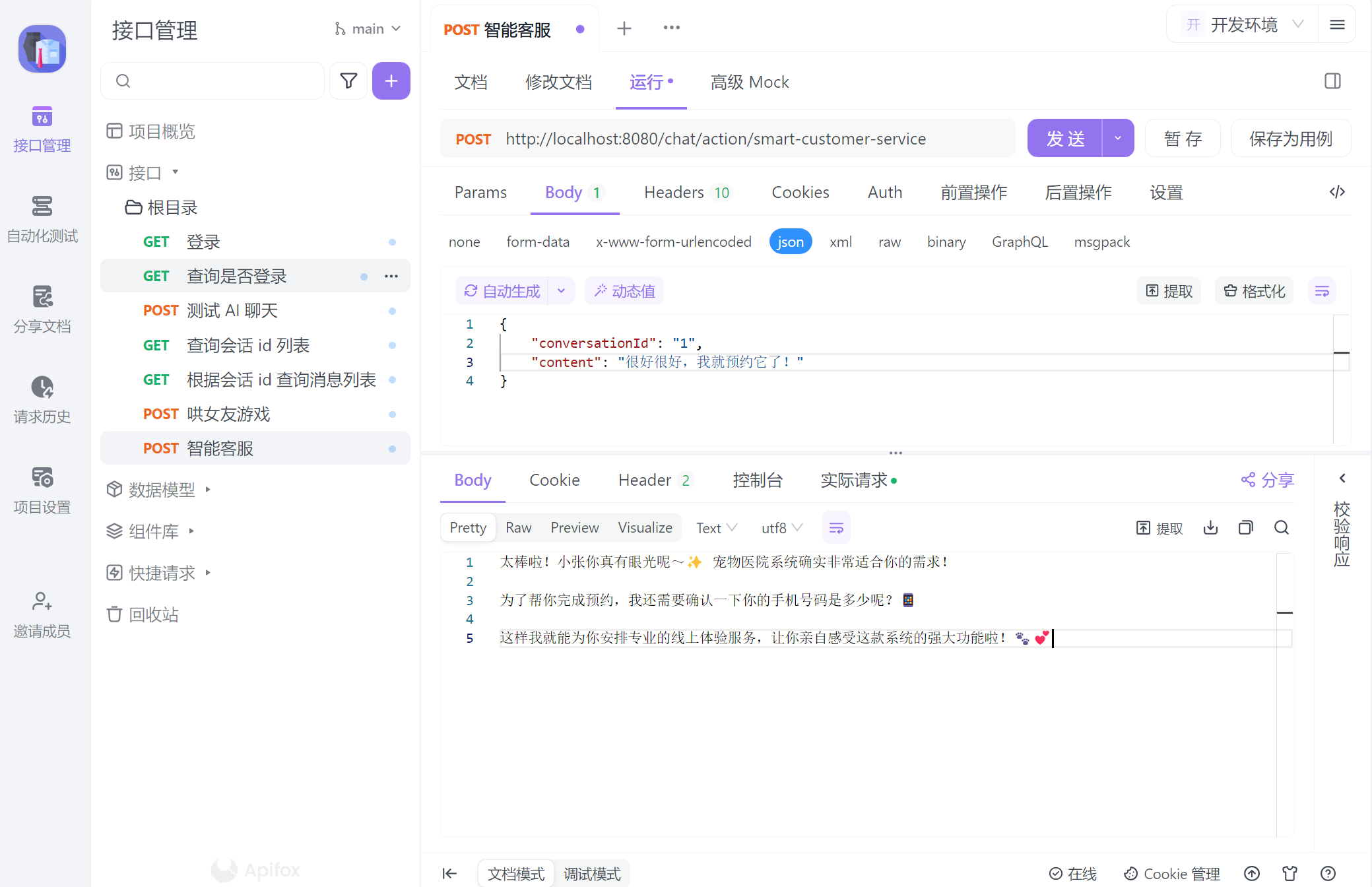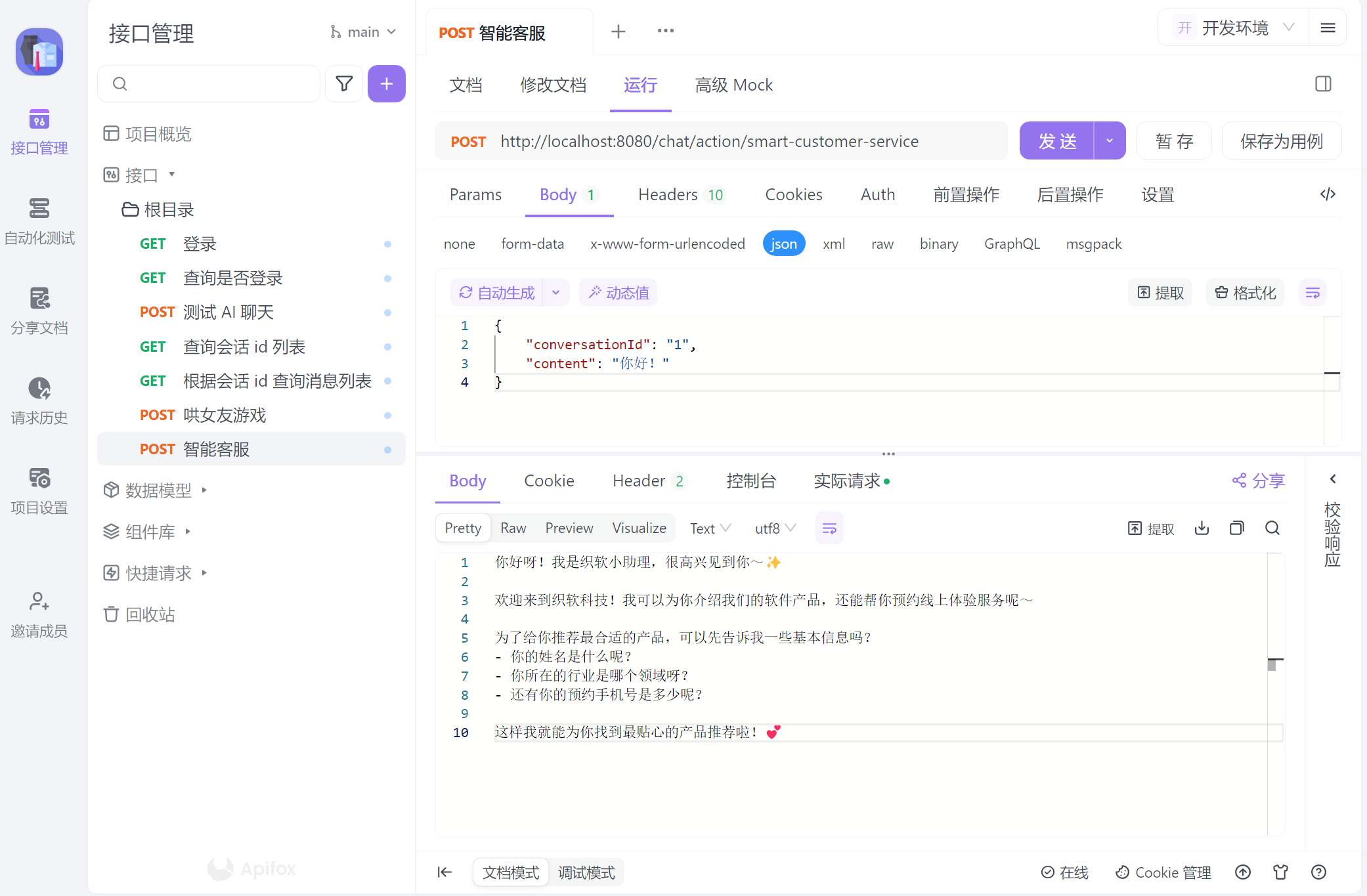 * post 访问: localhost:8080/chat/action/smart-customer-service