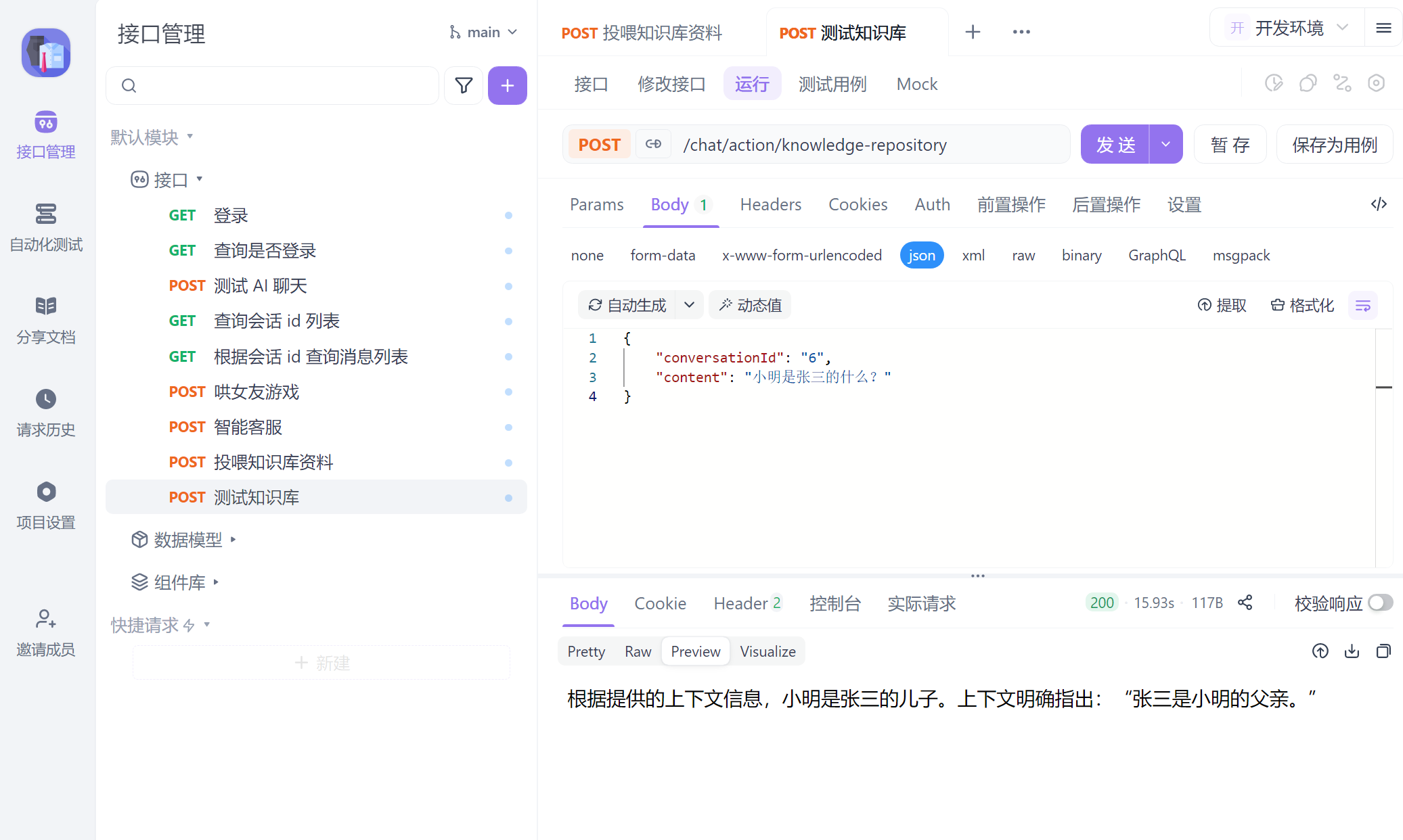 * post 访问: localhost:8080/chat/action/knowledge-repository